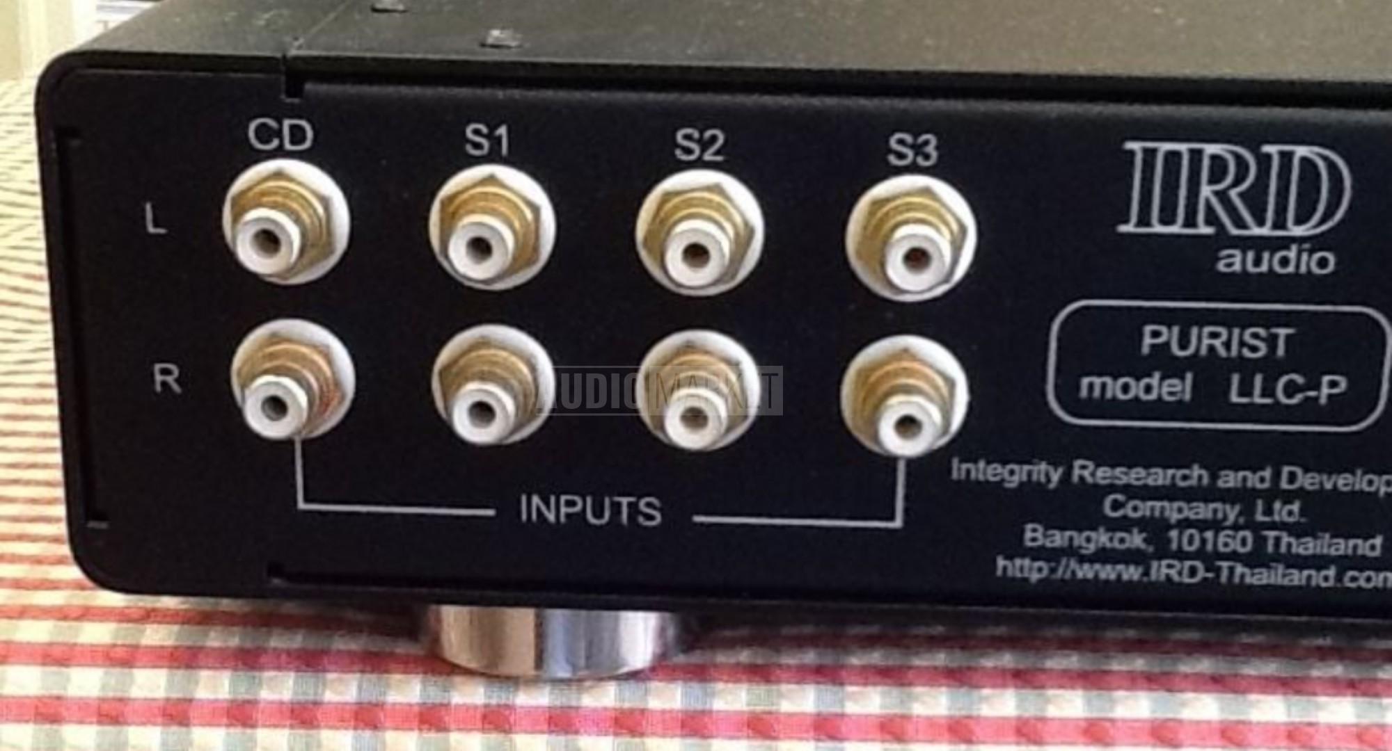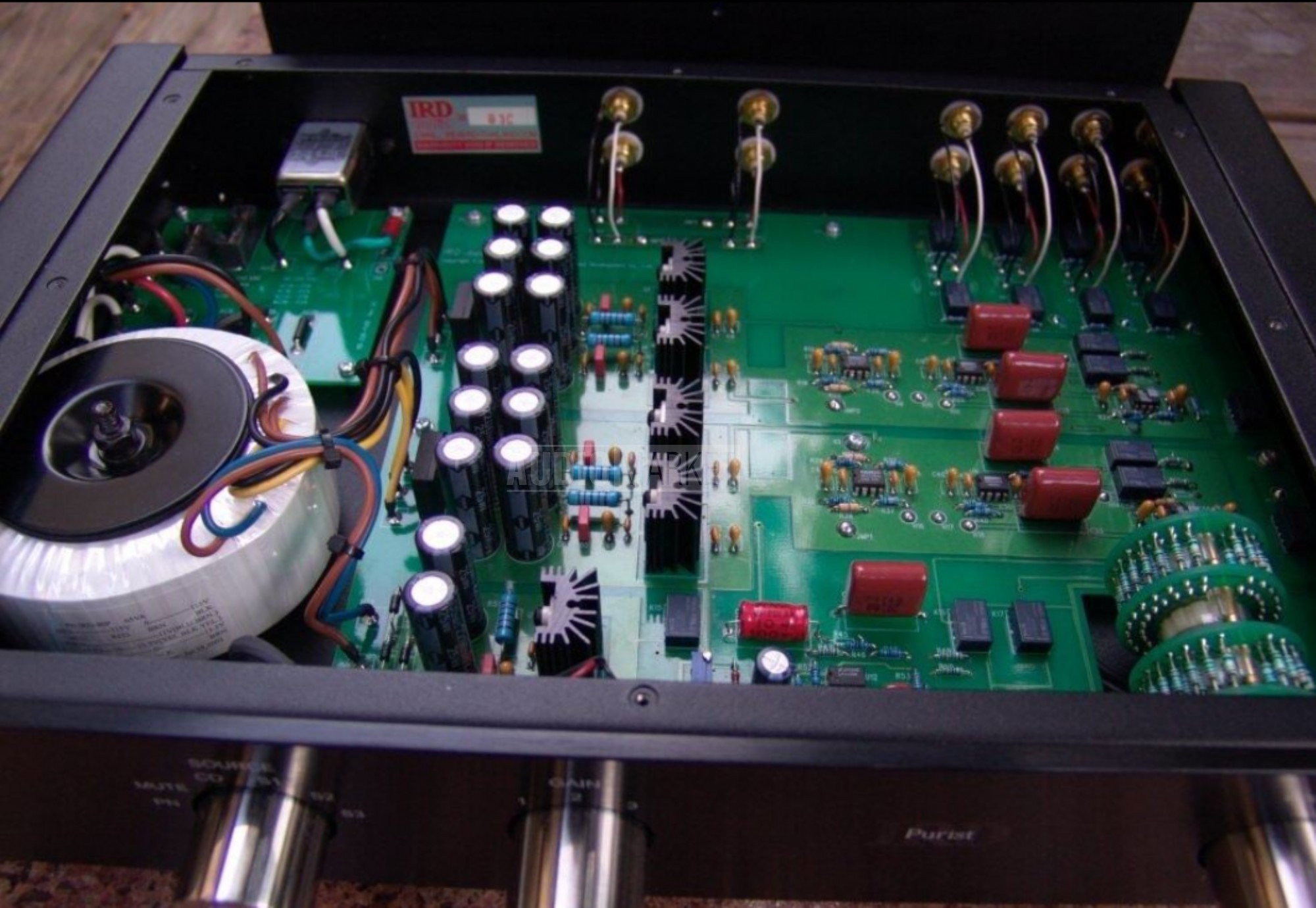 Preamp de linea activo/pasivo, marca IRD modelo Purist. Selector de fuentes y de ganancia (posibilidad de uso pasivo), ctrl de volumen por pasos Elna