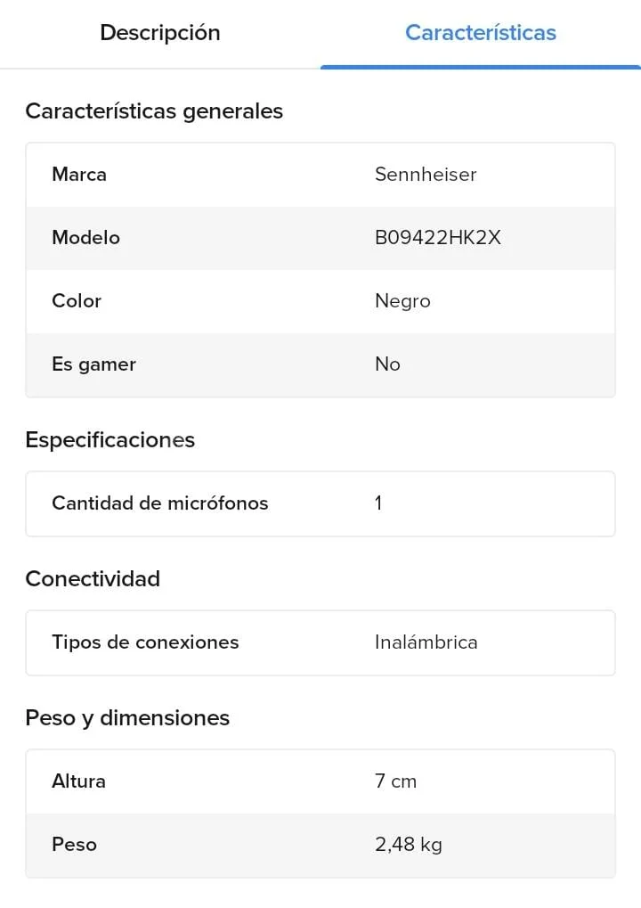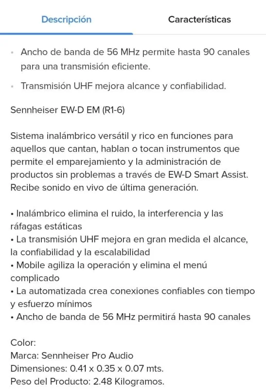 NO INCLUYE RECEPTOR DE BOLSILLO SENNHEISER.