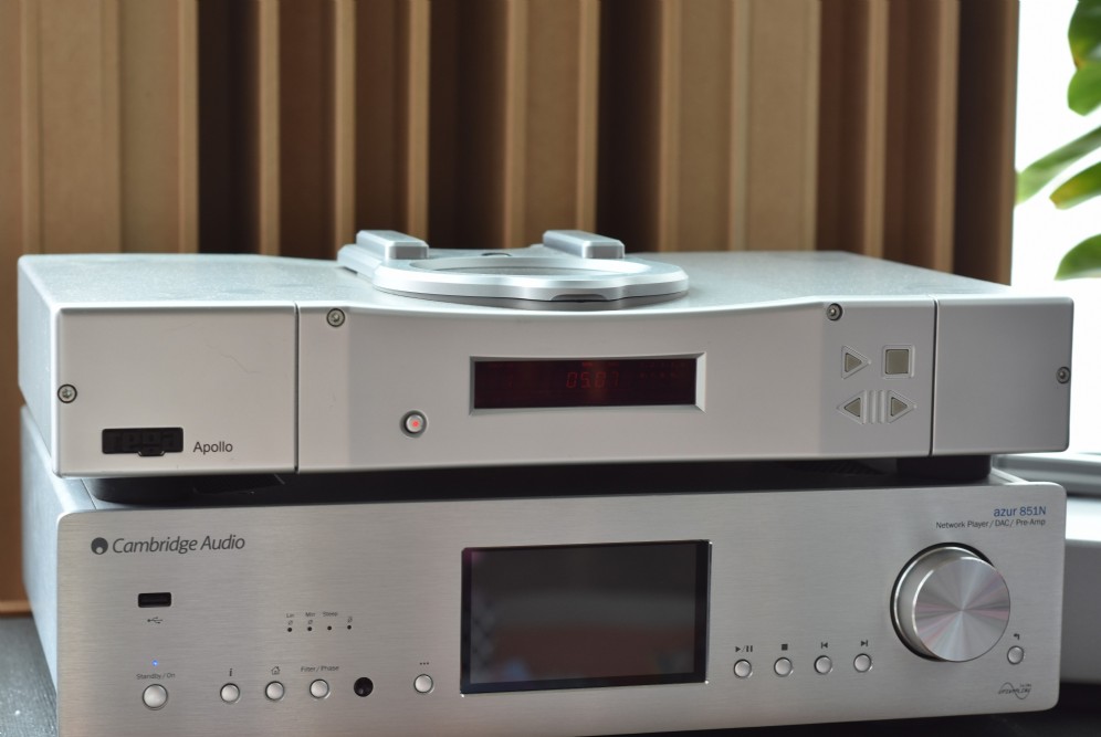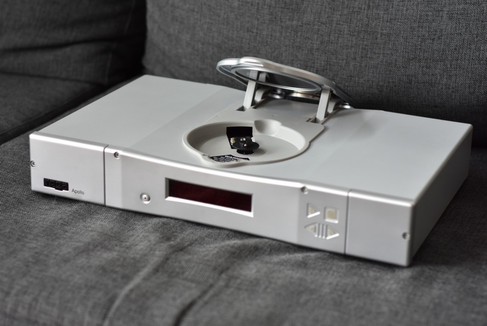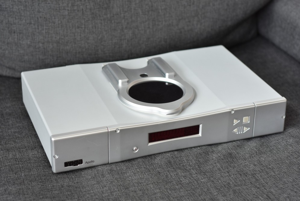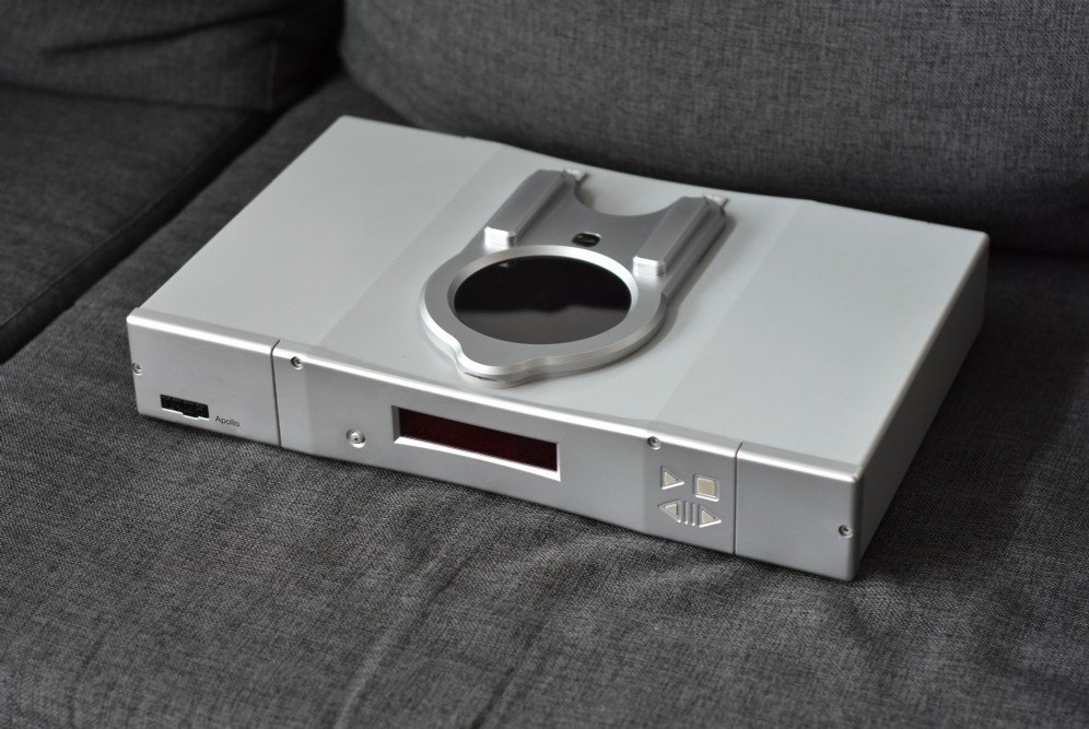 The Apollo can play redbook cd’s, CD-R, MP3’s and even WMA files. Its new remote even has specific keys which are dedicated for MP3 playback. It uses a three-point mounting ball chuck instead of a magnetic puck that is designed to help improve reading of the Cd by keeping it as flat as possible. The company claims this puts less stress on the mechanism for better performance during start up and stopping.